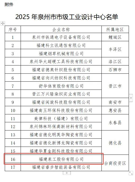 Recentemente, o Departamento de Indústria e Tecnologia da Informação da cidade de Quanzhou lançou oficialmente o "Aviso sobre a publicação da lista de centros de design industrial no nível da cidade de Quanzhou em 2025", com um total de 17 empresas listadas na cidade. Entre eles, Fujian Quangong Co., Ltd., que está profundamente envolvida no campo de máquinas inteligentes de tijolos e equipamentos de utilização abrangente de resíduos sólidos, foi selecionada com sucesso por seu excelente desempenho em inovação de design industrial, construção de sistemas de pesquisa e desenvolvimento e transformação de conquistas.