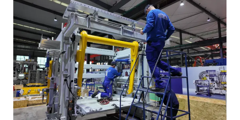 Nas linhas de produção deMáquinas Quangong Co., Ltd., o barulho das máquinas e das oficinas bem iluminadas tornaram-se a "norma" recentemente. Com o crescimento contínuo de pedidos nacionais e internacionais, clientes de todo o mundo vêm aumentando suas demandas de compra de equipamentos. Para garantir a entrega oportuna de cada máquina de moldagem de blocos, a Quangong Machinery Co., Ltd. lançou rapidamente um "Plano de ação especial para garantir a entrega", com os departamentos de produção, tecnologia, inspeção de qualidade e logística trabalhando juntos para correr contra o tempo.