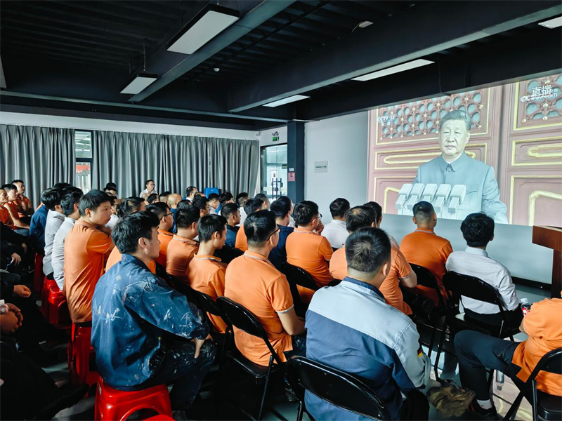 Às 9h do dia 3 de setembro, um grande desfile militar comemorativo do 80º aniversário da vitória da Guerra de Resistência do Povo Chinês contra a Agressão Japonesa e da Guerra Mundial Antifascista foi realizado em Pequim. A filial do Partido da Quangong Co., Ltd. respondeu ativamente ao apelo nacional e organizou todos os funcionários para assistirem à transmissão ao vivo simultaneamente, testemunhando juntos este momento histórico, sentindo o comportamento do forte exército da pátria e promovendo o grande espírito da Guerra de Resistência contra a Agressão Japonesa.
