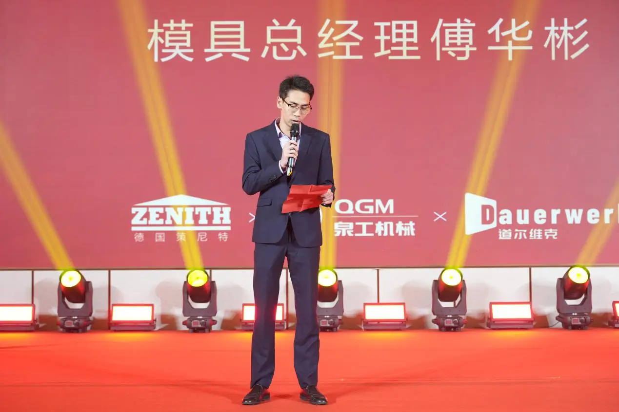 Fu Huabin, gerente geral da Quangong Mold Company, analisou as conquistas de desenvolvimento da empresa de moldes em 2025 em seu discurso. Durante o ano passado, a capacidade global de produção da empresa de moldes aumentou 16% em relação ao ano anterior. Vários processos importantes passaram por atualizações tecnológicas e automação, melhorando significativamente a qualidade e a vida útil do produto. Simultaneamente, ao estabelecer estações de serviço no estrangeiro, a empresa reforçou continuamente as suas capacidades de serviço no mercado externo, resultando num aumento de 30% no negócio de peças sobressalentes, proporcionando um forte apoio ao desenvolvimento global do grupo.
