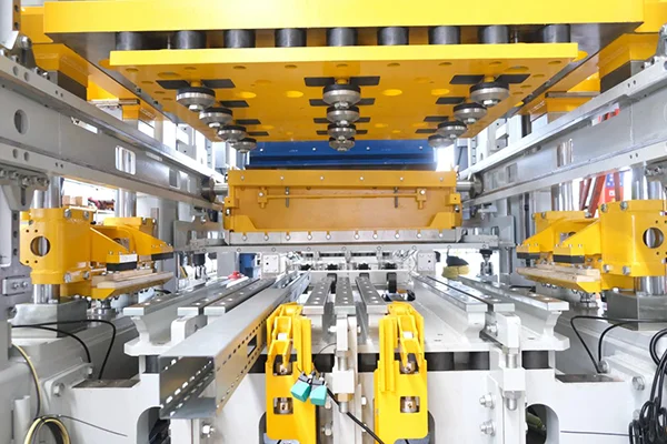2Sistema automático de troca rápida de molde O sistema automático de troca rápida de moldes da Zenith baseia-se na operação coordenada de vários dispositivos, permitindo uma substituição de moldes inteligente, rápida e precisa. Uma vez transportado o molde próximo à máquina principal, ele é colocado na unidade de troca de molde por um sistema de elevação. O sistema conclui automaticamente o processo de troca de molde sem manuseio manual, posicionamento ou travamento.