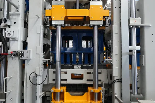 7Pressione o dispositivo de travamento da cabeça Este mecanismo de travamento mecânico consiste em blocos de travamento de alta resistência, uma cabeça de prensa em forma de cunha e cilindros hidráulicos de dupla ação. Durante a desmoldagem, os cilindros acionam os blocos de travamento para fixar radialmente a cabeça da prensa, formando um impasse mecânico. O molde é então liberado sob pressão constante, eliminando efetivamente o ressalto elástico e o micromovimento, garantindo bordas afiadas dos tijolos, superfícies lisas e uma taxa de qualificação do produto bastante melhorada.