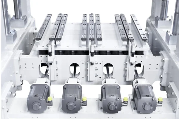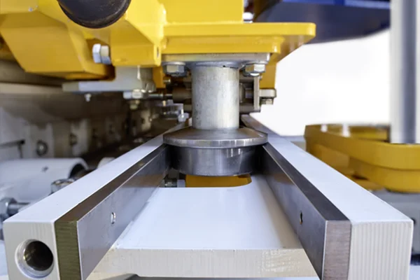 4Manutenção fácil ● Os trilhos-guia soldados das caixas de enchimento estão equipados com peças de desgaste substituíveis. Isso resulta em custos e tempo de montagem muito mais baixos. ● A viga transversal foi desenvolvida de forma que os pilares possam ser movidos lateralmente individualmente. Isto resulta em trabalhos de manutenção consideravelmente mais rápidos e menos intensivos fisicamente. ● Módulos individuais, motores, adaptadores de potência do motor e unidades de computador podem ser facilmente trocados sem a necessidade de um engenheiro de serviço ou programador.